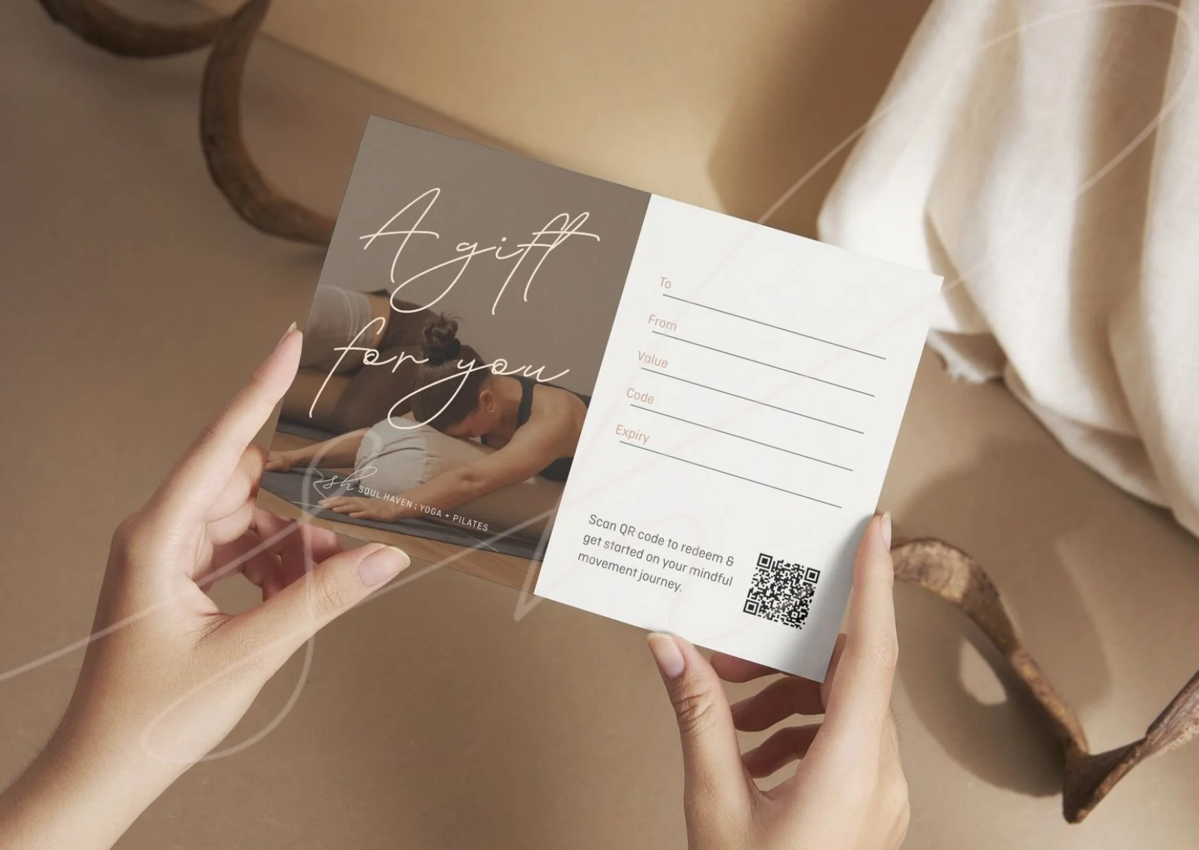 A beautiful way to present your Soul Haven; Yoga + Pilates gift card.